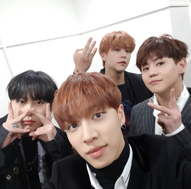 사진 속에는 입대한 윤두준을 제외하고 양요섭, 용준형, 손동운이 함께 하고 있는 모습이다.
