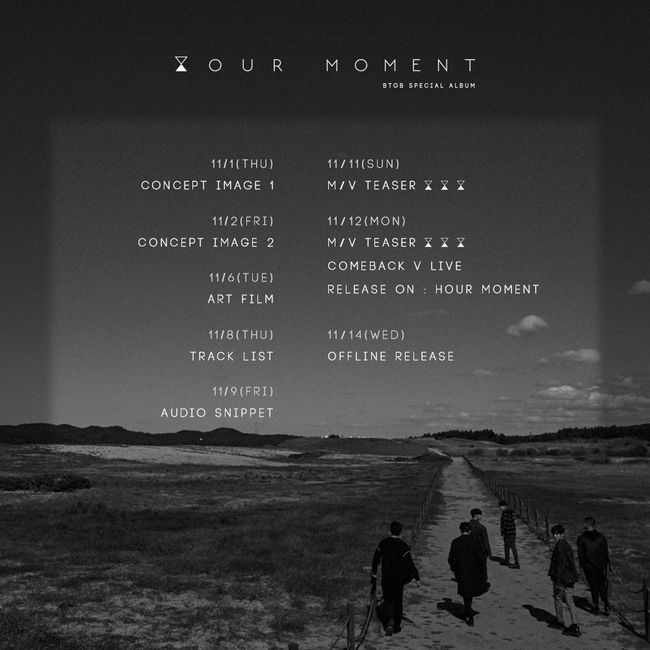 비투비는 31일 0시 비투비의 공식 SNS를 통해 스페셜 앨범 'HOUR MOMENT'의 컴백 스케줄 티저 이미지를 공개했다.