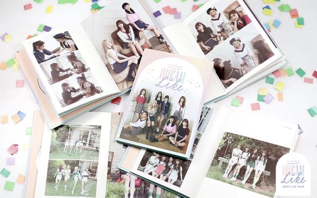공개된 프리뷰 이미지들은 ‘드림라이크’ 오프라인 음반 실물을 촬영한 실제 사진들로, 단체 및 여덟 멤버 각각의 재킷 이미지, 트랙리스트 등 앨범 구성을 소개하고 있다. 꽃다발처럼 화사하고 컬러풀한 앨범 구성과 소녀다운 매력이 물씬 느껴지는 커버 이미지가 인상적이다.