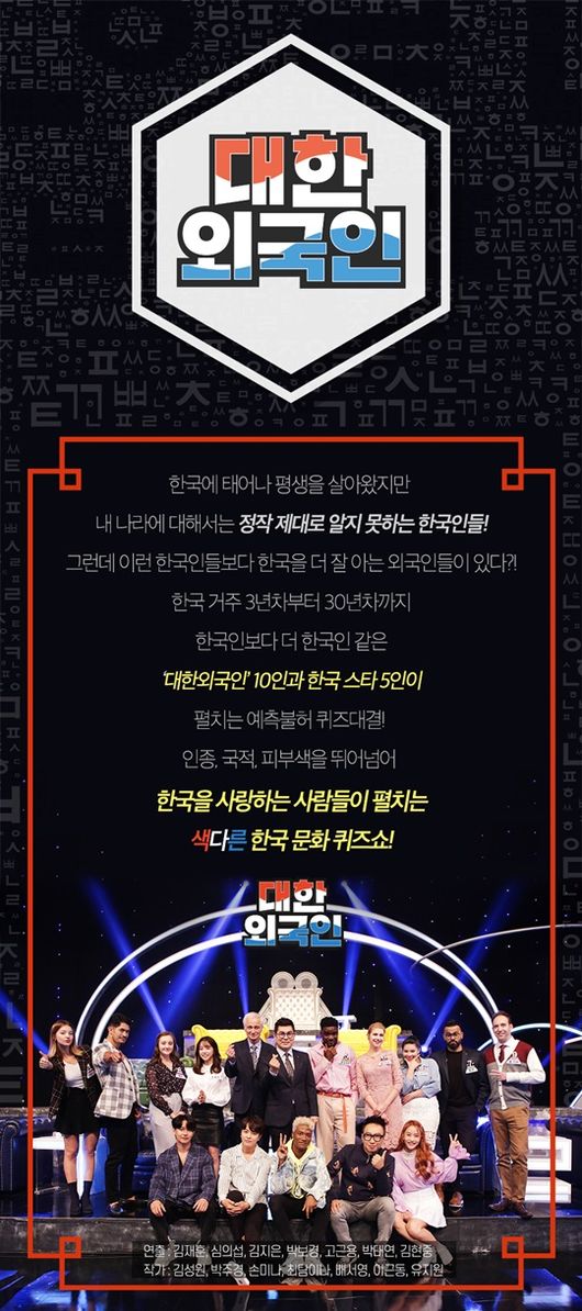 ‘대한외국인’은 한국인보다 한국에 대해 더 잘 아는 외국인들과 한국인 출연진이 한국에 대한 퀴즈를 맞히는 형식으로 승리를 예측하기 힘든 승부를 펼치는 퀴즈쇼. 여기에 10명의 외국인들이 한국생활을 하며 겪었던 일화와 한국과는 다른 자신의 국가 문화에 대한 정보를 전달하며 토크쇼의 재미까지 선사하고 있다. 또한 우리도 알지 못했던 한국에 대한 정보를 알 수 있다는 점에서 더욱 의미 있는 프로그램으로 시청자들의 사랑을 받고 있다. 특히 지난 2회에서 배 속이 허전하여 자꾸 먹고 싶다는 의미의 순우리말 ‘구쁘다’를 40여 년간 한국어를 연구한 독일인 허배 교수가 맞히며 시청자들에게 신선한 충격을 선사, 실시간 검색어 1위까지 올랐다.