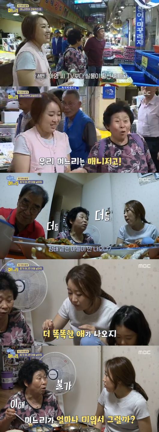 상점주인들은 아영을 보자마자 "TV보다 예쁘다"고 하자, 시母는 "며느리는 매니저"라면서 아영을 소개해, 또 다시 아영을 섭섭하게 했다. 그 사이, 아영은 무든 짐을 도맡아 들게 됐다. 아영의 말은 들어주지도 않고 시母와 남편 오정태는 시장에서 인사하느라 바빴다.