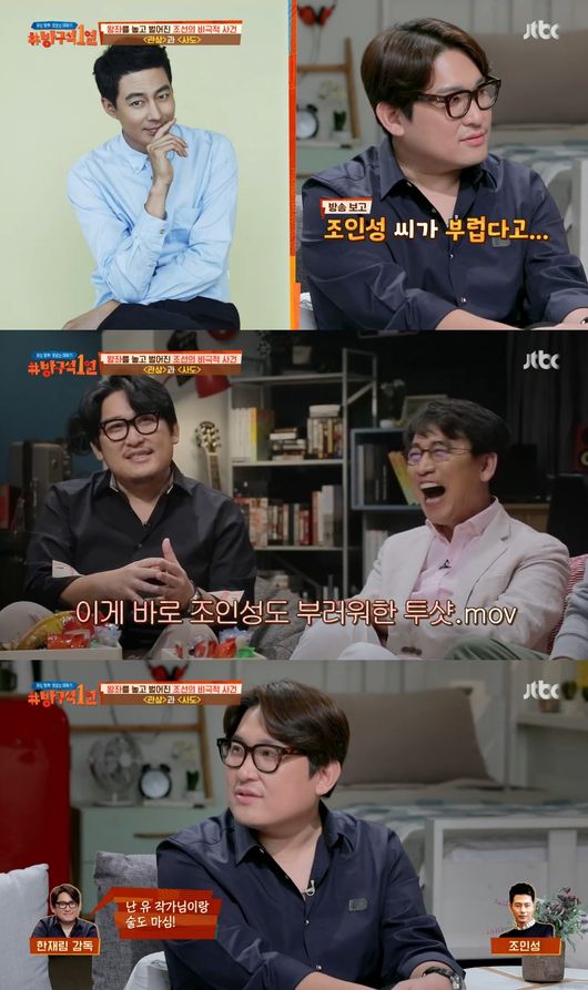 조인성과 영화 ‘더 킹’(2017)을 통해 호흡을 맞춘 한재림 감독은 “제가 지난 번에 ‘방구석 1열’에 나왔을 때 유시민 선생님과 투샷이 잡혔다. 이 방송을 본 조인성이 부러워하더라. 조인성은 유시민 작가님의 팬이다”라며 “제가 작가님과 술도 마셨다고 하니까 부러워하더라. 그래서 제가 유시민 작가님의 사인도 받아다 줬다”고 전했다.