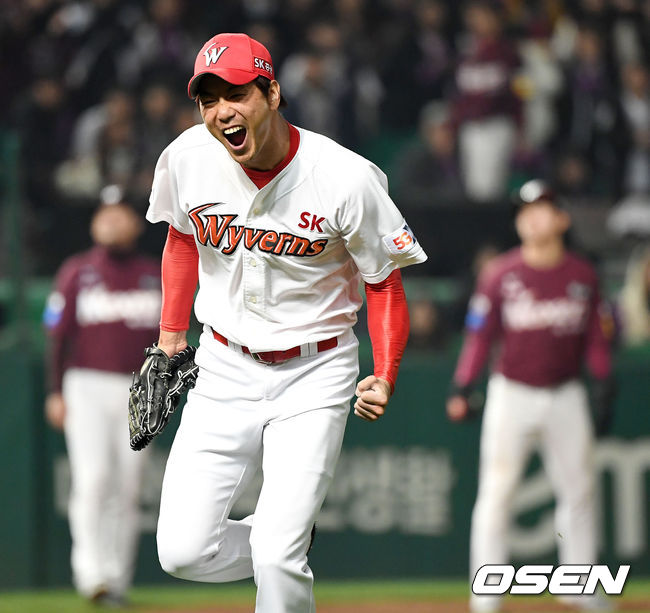 SK 에이스 김광현(30)이 문자 그대로 ‘전력투구’를 하며 팀의 초반을 이끌었다. 이닝을 덜 처리하더라도 아예 점수를 주지 않겠다는 강한 의지가 묻어 나온 투구였다. 그러나 임무 완수까지 아웃카운트 하나가 모자랐다.