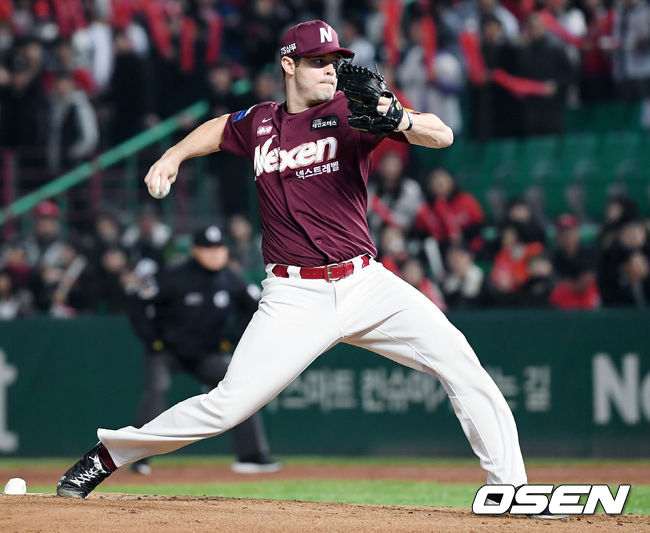이날 브리검의 총 투구수는 98개. 최고 150km 직구(29개) 투심(15개) 외에 슬라이더(37개) 커브(17개)를 구사했다. 안우진이 최항에게 3타점 2루타를 얻어맞아 브리검의 실점은 4점으로 불어났다. 자책점은 2점이다. /waw@osen.co.kr