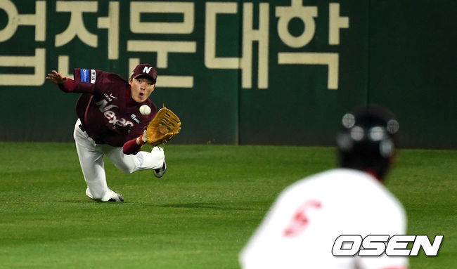 호수비는 여기서 멈추지 않았다. 5회말 1사 1루에서는 강승호가 중견수 앞에 짧게 떨어지는 라인드라이브성 타구를 만들었다. 임병욱은 앞으로 달려와 과감하게 몸을 날렸고, 그대로 글러브에 공을 집어 넣었다.