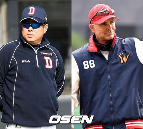[사진] 김태형-힐만 감독(위), 김경문-김성근 전 감독(아래).