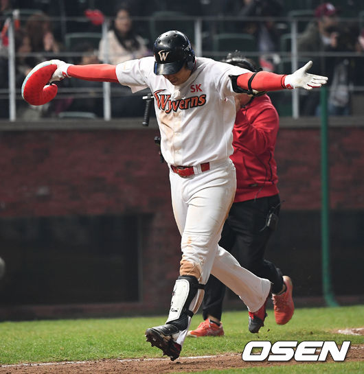 이어 그는 "지난해 시즌 시작할 때 1번타자는 나였다. 내가 슬럼프와 악재에 빠진 사이 노수광 선수가 잘하다 보니 자리가 바뀐 것이다. 누구를 탓할 게 아니라 스스로 변화가 먼저였다. 2군에서 모든 것을 내려놓고 처음부터 다시 시작한다는 생각으로 했다. 힘든 시간이었지만 2군 스태프들이 많이 신경 쓰고 도와준 덕분에 지금 다시 이렇게 플레이하고 있다. 힐만 감독님께도 많은 것을 배우고 있다"고 고마워했다.