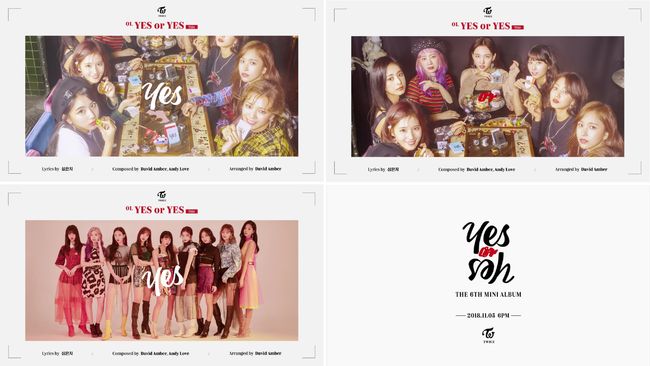한편 트와이스는 새 앨범 발매 당일인 11월 5일 서울 강서구 화곡동에 위치한 KBS아레나(구 88체육관)에서 컴백 쇼케이스를 개최한다. 타이틀곡 'YES or YES'를 비롯해 미니 6집 앨범 'YES or YES'의 전곡은 같은 날 오후 6시 각종 음원사이트를 통해 공개된다. /mk3244@osen.co.kr