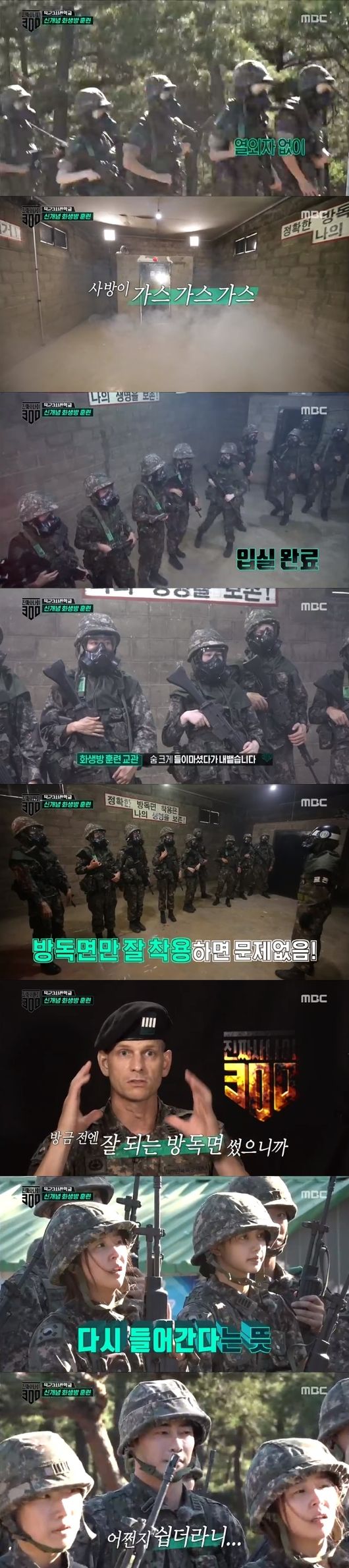 이날 멤버들은 구형 방독면으로 화생방 훈련을 했다. 매튜 다우마, 강지환, 이유비는 화생방 훈련을 포기하고 말았다. 이유비는 “한 번 경험했다고 자신감에 차 있었다”며 아쉬움을 드러냈고, 체력 에이스였던 매튜 다우마는 뜻밖에도 가장 먼저 화생방 훈련장을 탈출했다. 나머지 멤버들은 끝까지 버티며 화생방 훈련을 무사히 마쳤다.
