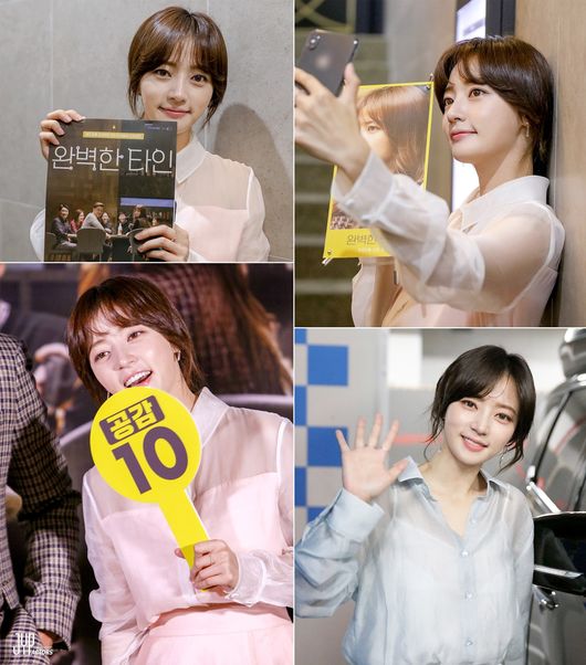 송하윤은 연기는 기본, 작품 홍보에도 최선을 다하고 있다. 소속사 JYP엔터테인먼트가 공개한 사진 속에서 송하윤은 직접 '완벽한 타인' 포스터를 들고 열혈 홍보에 나서고 있는 모습. 송하윤은 재미, 공감, 케미 모든 것을 잡아 10점 만점의 10점이라는 의미의 판넬을 들고 환한 미소를 짓고 있어 시선을 사로잡는다.