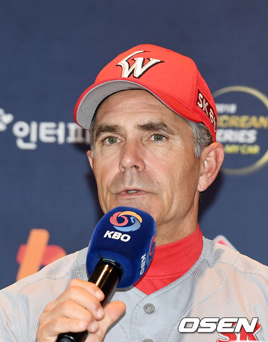 트레이 힐만 SK 감독은 3일 서울 삼성동 코엑스에서 열린 ‘2018 한국시리즈 미디어데이’에 참여해 한국시리즈에 임하는 각오를 밝혔다. SK는 플레이오프에서 넥센을 3승2패로 꺾고 한국시리즈에 올랐다. 특히 5차전에서 역전에 재역전을 벌이는 대혈전 끝에 11-10으로 승리, 분위기가 절정에 이른 상황이다.