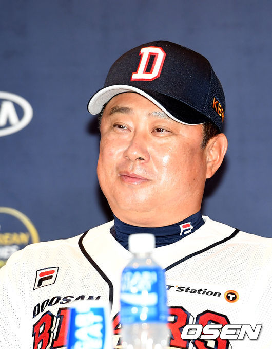 김태형 감독은 전날 경기에 대한 질문이 나오자 "계속 웃으면서 봤다"라며 미소를 지었다. 대표선수로 나온 이용찬과 정수빈도 역시 플레이오프 5차전이 연장으로 흐르기를 바랐다는 뜻을 전했다. 이용찬은 "보면서 계속 연장으로 가기를 바랐다"라고 웃었고, 정수빈 역시 "방에서 보고 있었는데, 어느 팀을 응원하지 않았지만, 연장만 가라고 생각했다"고 밝혔다. /bellstop@osen.co.kr
