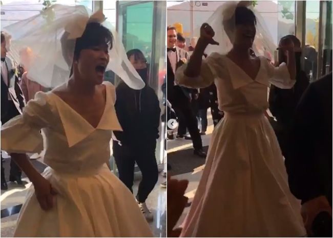 함께 공개된 사진에는 김혜선과 그의 남편인 독일 국적 스테판 지겔의 결혼 본식 모습이 담겨 있다. 특히 영상 속에서 김혜선은 가수 싸이의 곡 '강남 스타일'에 맞춰 말춤을 추며 식장 안으로 들어가 폭소를 자아낸다. 특유의 씩씩한 신부 자태가 인상적이다. 김혜선의 웨딩 드레스 밑으로는 점핑 신발이 보인다.