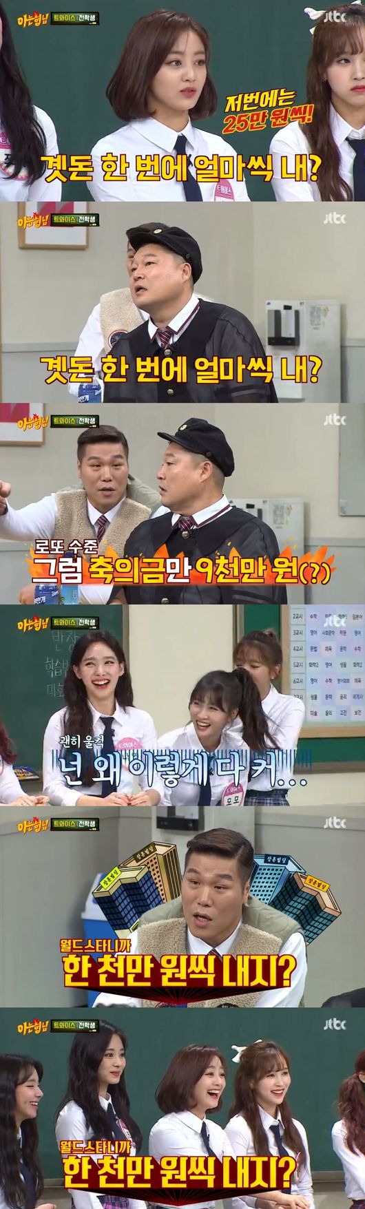걸그룹 트와이스가 25만 원씩 곗돈을 모르고 있다고 밝혔다.