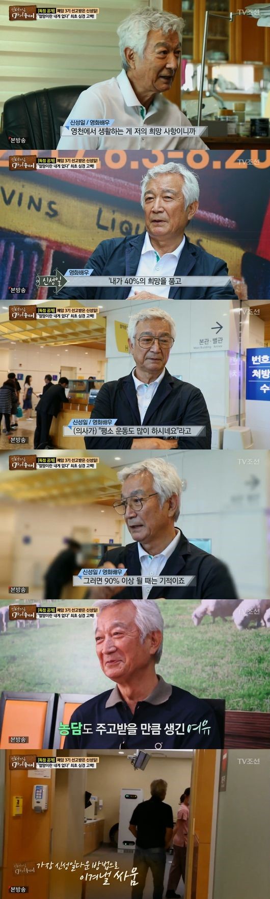 여든이 넘은 신성일은 "적합한 수술을 하고 거기에 맞는 항암 요법을 잘하면 30~40% 회복률이 있을 것"이라는 의사의 말에도 자신의 회복 가능성을 80% 이상이라고 잡았다. 스스로 이겨내겠다며 기적을 다짐했다.
