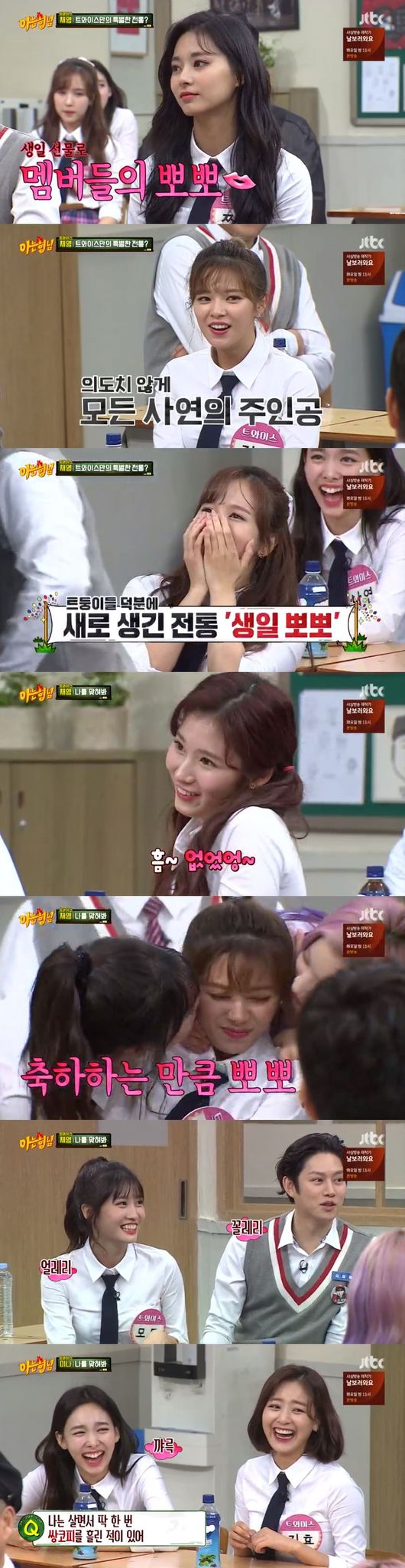 채영은 트와이스의 전통에 대해 퀴즈를 냈다. 채영은 생일 때마다 뽀뽀라고 답을 밝혔다. 그 이유에 대해서는 "생일 선물로 멤버들한테 뽀뽀를 받고 싶다고 대답해서 그때부터 멤버들 생일 때마다 뽀뽀를 해주게 됐다"고 말했다. 마침 녹화 당일은 민경훈의 생일로, 형님들이 일어나 민경훈의 볼에 뽀뽀를 했다.