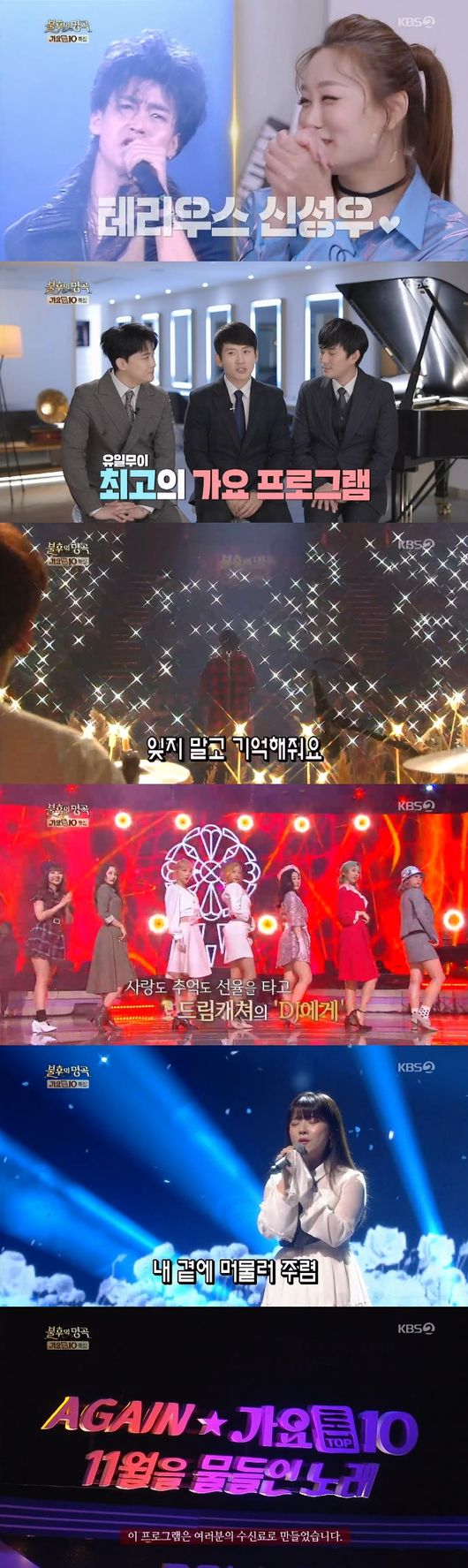 지난 3일 방송된 KBS2 ‘불후의 명곡-전설을 노래하다’에서는 ‘가요톱10 특집’이 그려졌다. 이날 6팀의 가수들은 '가요톱10' 시대별 11월 1위 수상곡들로 다채로운 무대를 꾸몄다.
