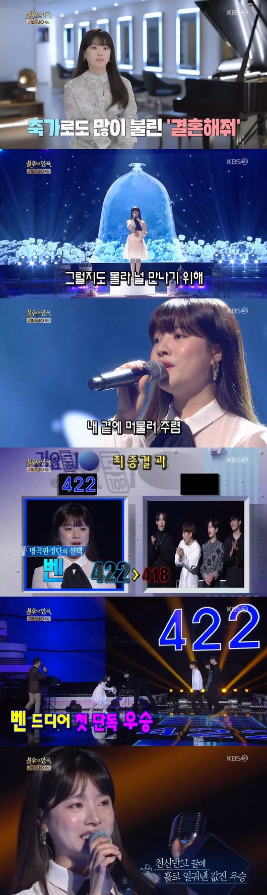 가수 벤이 ‘불후의 명곡’에서 처음으로 단독 우승을 차지했다.