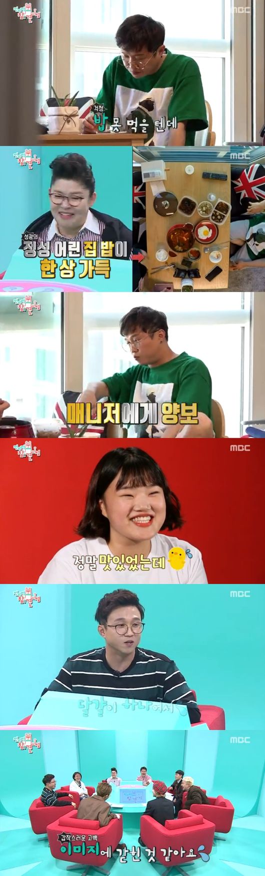 일부러 달걀 후라이를 먹었다며 양보한 박성광을 보며 MC들은 "혹시 자상한 이미지에 갇혀서 그런거냐"고 질문, 박성광은 "이미지에 갇혔다"며 자연스럽게 고백했고, 착한 이미지 굴레에 갇혔다는 박성광의 모습이 웃음을 안겼다. 이를 본 이영자는 "직접 내가 만든 음식을 해주고 초대하는 건 식구로 받아들인 것"이라면서 식사 초대는 식구로 받아들이는 것이라며 흐뭇해했다.