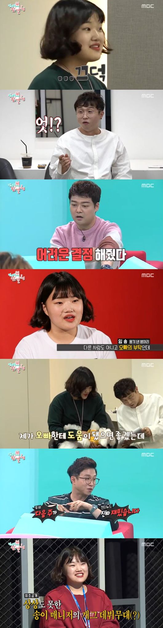 3일 방송된 MBC 예능 '전지적 참견 시점(이하 전참시)'에서 송이 매니저의 개그무대 데뷔가 시청자들을 솔깃하게 했다.