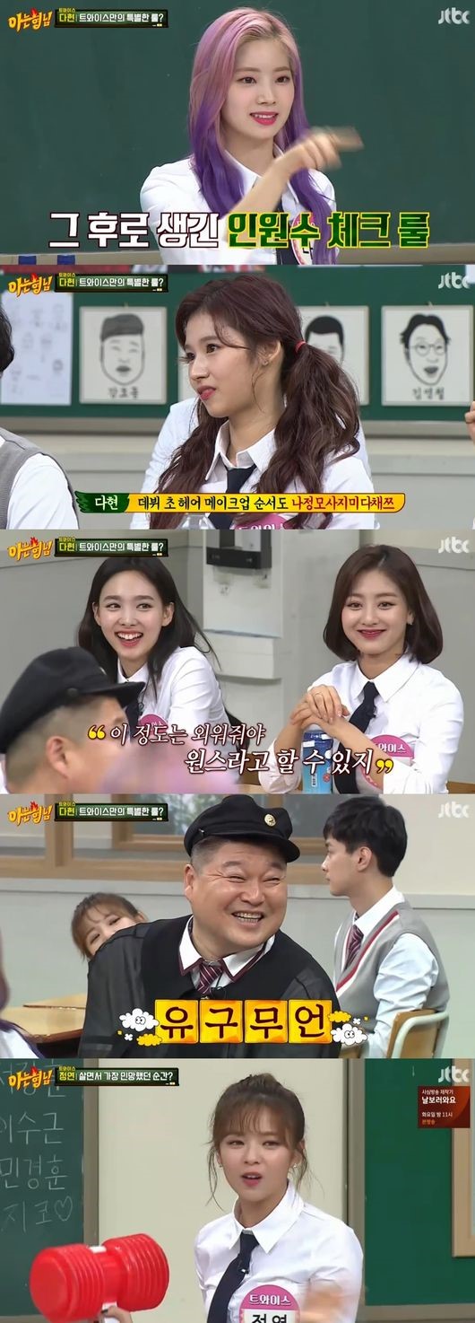 3일 방송된 JTBC '아는 형님'에 컴백을 앞둔 그룹 트와이스가 '일일 전학생'으로 출연했다.