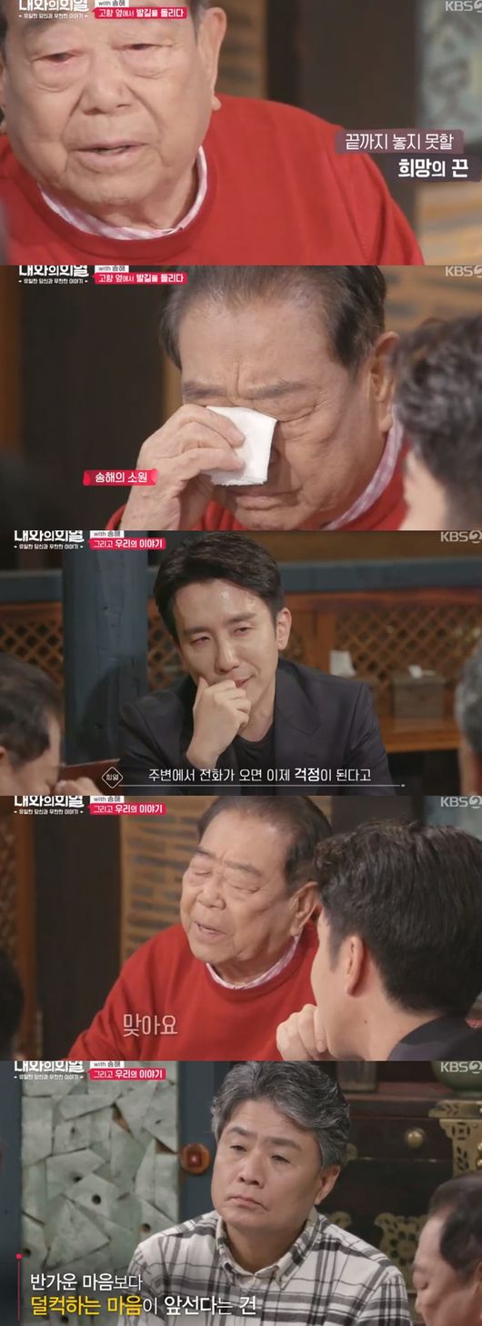 송해가 어머니 이야기를 하며 내내 눈물을 흘려 안타까움을 전했다.