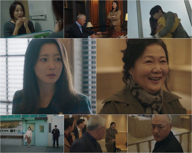 지난 3일 방송된 tvN 토일드라마 ‘나인룸’(연출 지영수, 극본 정성희) 9회에서는 변호사 을지해이(김희선 분)와 시한부 사형수 장화사(김해숙 분)가 원래의 몸으로 돌아간 모습이 그려졌다.