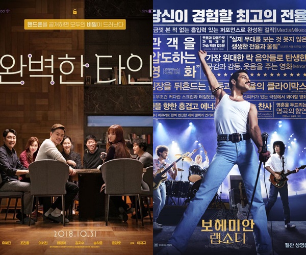 지난달 31일 개봉한 ‘완벽한 타인’과 ‘보헤미안 랩소디’가 극장가를 점령하며 관객들을 동원하고 있다.
