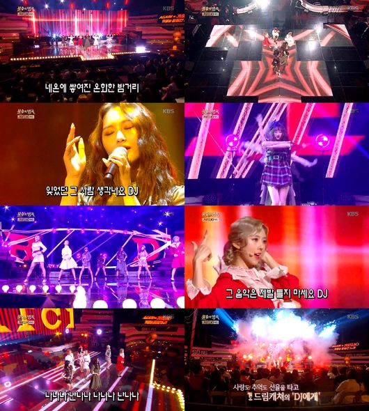 강렬한 메탈록 사운드로 편곡된 'DJ에게'는 드림캐쳐의 폭발적인 군무와 어우러져 새로운 매력으로 재탄생했다. 특히 간주 부분 드림캐쳐의 아름다운 시간차 안무는 현장의 관객들은 물론 시청자들까지 매료시키기 충분했다는 평가다.