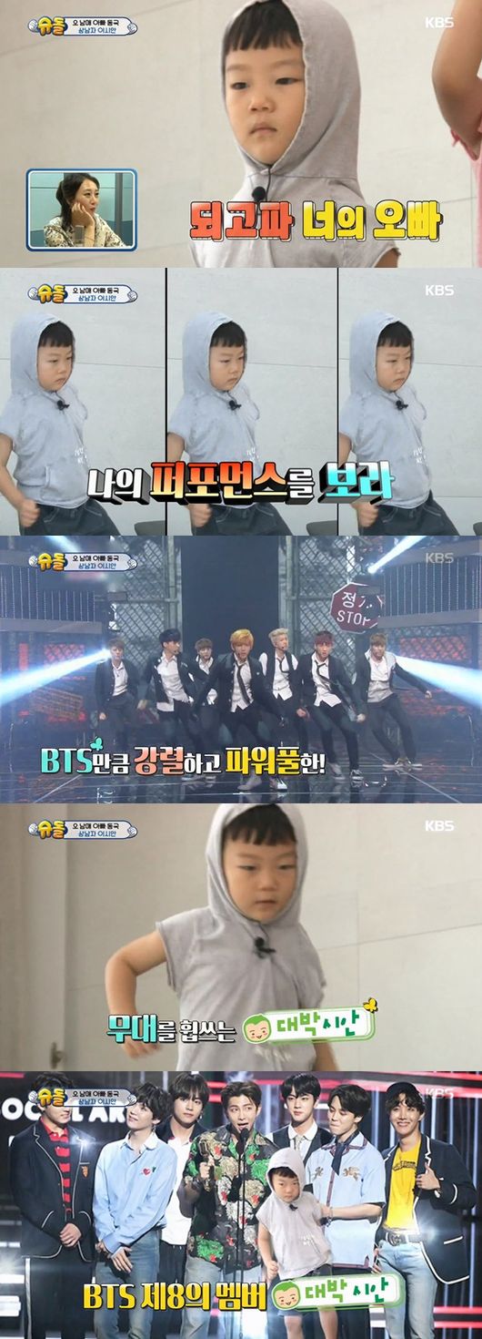 이어 시안이는 “BTS가 떠오른다”고 말했고 이동국은 “KTX는 알아도 BTS는 모르는데”라고 답해 삼남매의 눈총을 받았다. 시안이는 “노래 잘하는 삼촌들”이라고 설명했고 BTS가 방탄소년단임을 알게 된 이동국은 즉석 무대를 제안했다.