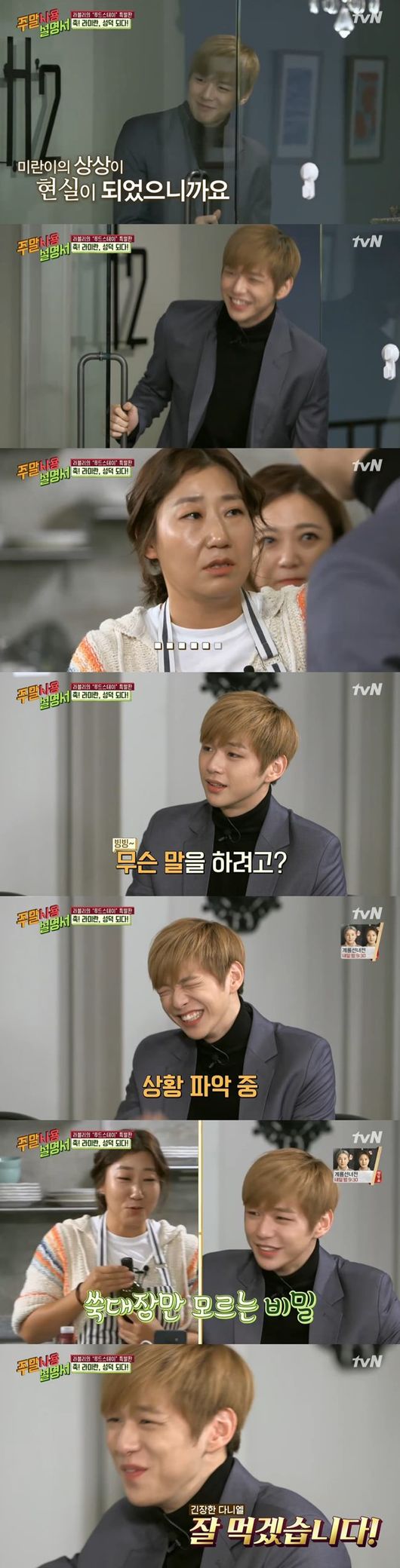 4일 오후 방송된 케이블채널 tvN 예능프로그램 '주말 사용 설명서'에서는 강다니엘이 라미란의 '푸드스테이'를 찾는 모습이 그려졌다. 라미란은 강다니엘의 등장에 어느 때보다 행복해 하면서 음식을 준비했다.
