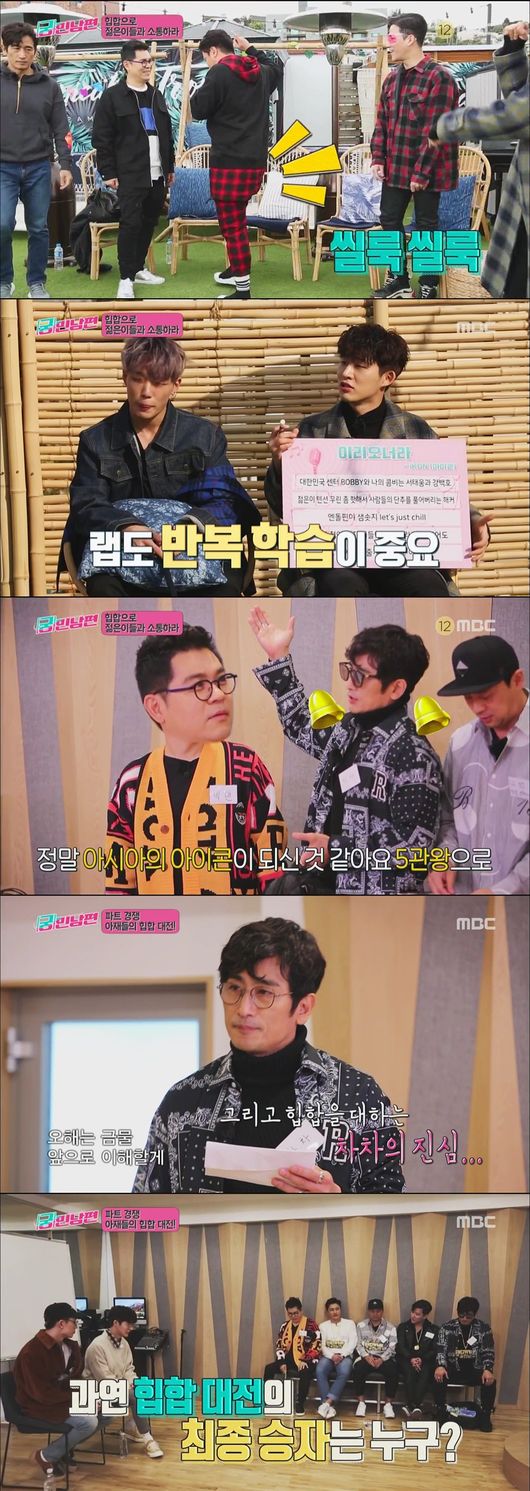 지난 4일 방송된 MBC ‘궁민남편’에서는 차인표, 안정환, 김용만, 권오중, 조태관이 본격적으로 힙합 노래 만들기에 도전해 랩 네임부터 파트 경쟁 공연까지 휘몰아치는 힙합 클래스를 펼쳤다. 부끄러워하다가도 이내 경쟁의식까지 불태우는 다섯 멤버들의 변화는 온 가족 시청자들에게 공감과 폭소를 전했다.