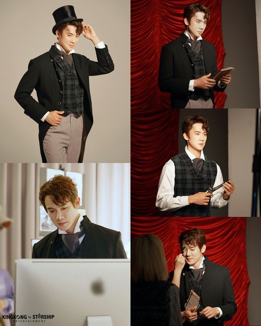유연석 소속사 킹콩 by 스타쉽 측은 5일 유연석의 뮤지컬 ‘젠틀맨스 가이드: 사랑과 살인편’ 포스터 촬영 현장 사진을 공개했다.
