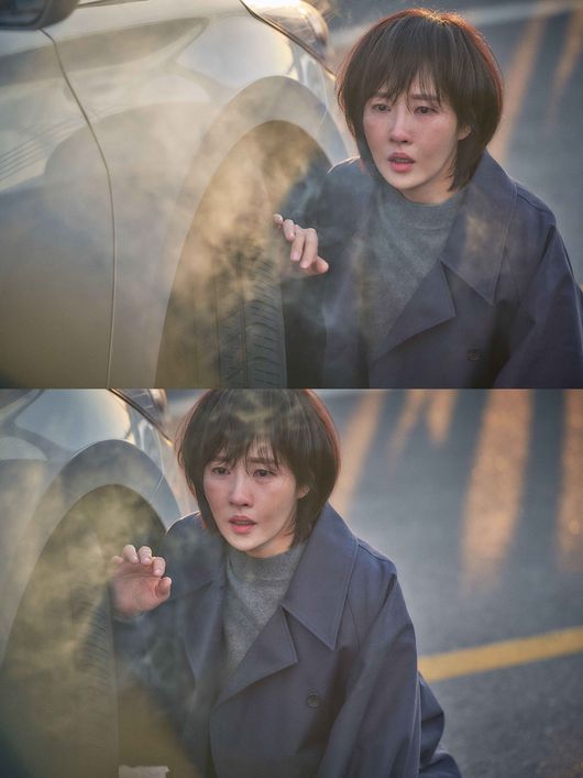 공개된 사진 속 김선아는 희뿌연 연기가 가득한 도로 위 정처 없이 세워진 자동차 옆에 무너지듯 주저앉아 있다. 전체적으로 밝음과 어둠이 공존하는 듯 미묘한 분위기, 김선아의 무채색 의상, 흐트러진 머리 등이 긴장감 넘치고 미스터리한 극의 분위기를 고스란히 보여준다.