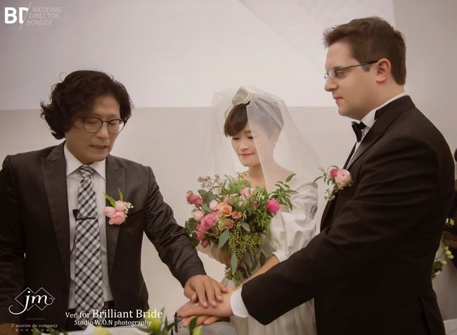 해피메리드컴퍼니 측은 5일 김혜선·스테판 지겔 부부의 결혼식 본식 웨딩화보를 배포했다.