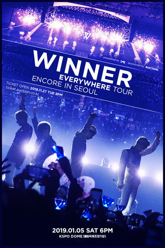 YG엔터테인먼트는 오늘(5일) 오후 2시 공식 SNS를 통해 위너의 앵콜 콘서트 소식을 알리는 포스터를 게재했다. 위너는 내년 1월 5일(토)오후 6시 서울 KSPO DOME(올림픽 체조경기장)에서 ‘WINNER EVERYWHERE TOUR ENCORE IN SEOUL’를 개최하며 푸른 물결 감동을 재현할 예정이다.