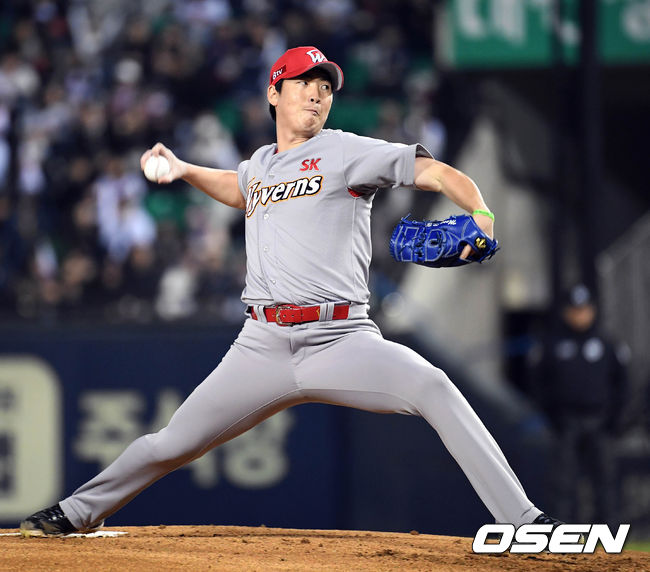 SK 우완 문승원(29)이 두산 타선을 막아내지 못했다. 포스트시즌 SK 투수 첫 퀄리티스타트(선발 6이닝 이상 3자책점 이하)도 이뤄지지 않았다.