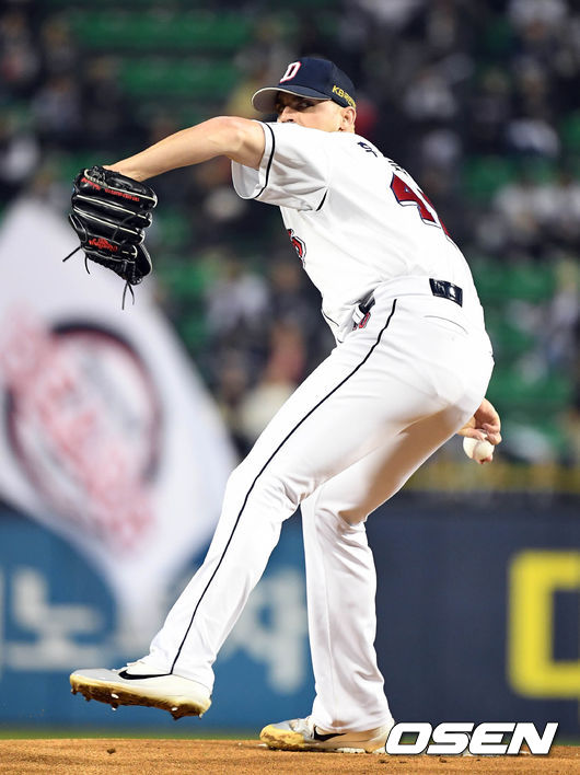 후랭코프는 5일 서울 잠실구장에서 '2018 신한은행 MY CAR KBO리그 포스트시즌' SK 와이번스와의 한국시리즈 2차전에 선발 등판해 117개의 공을 던져 6⅔이닝 5피안타 2볼넷 10탈삼진 3실점 1자책을 기록했다.