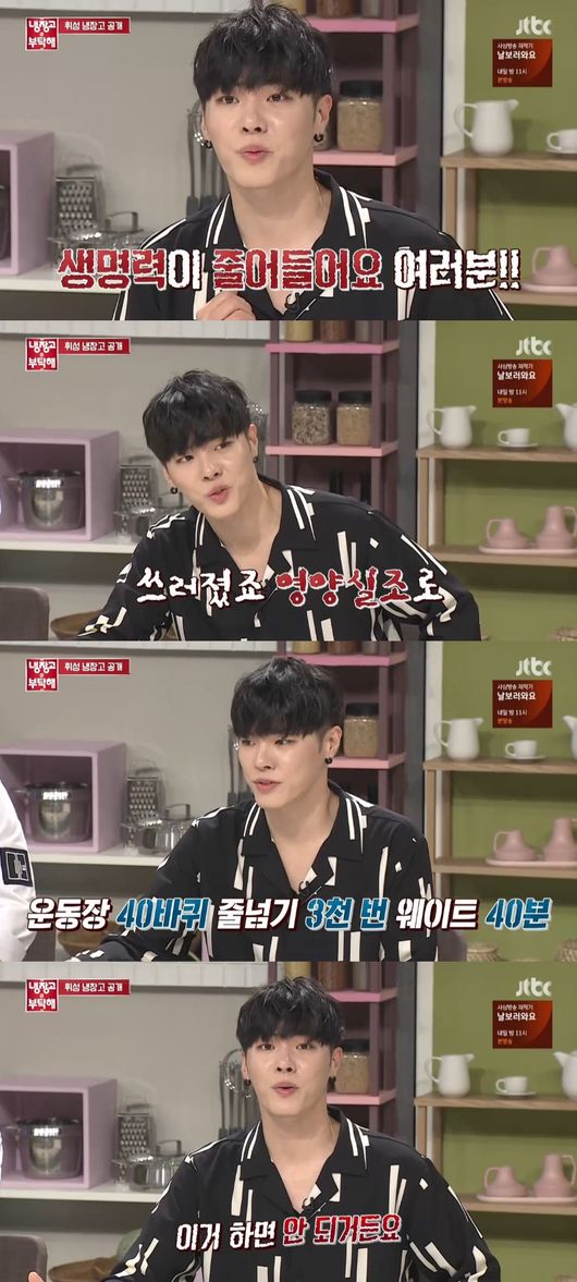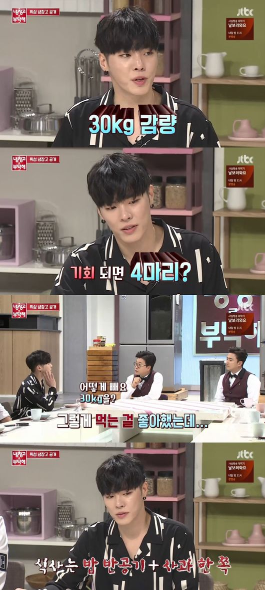 휘성의 다이어트 일화는 놀라웠다. 그는 "두 달 만에 30kg를 감량한 적 있다. 줄넘기 3000번, 웨이트 트레이닝 40분, 운동장 40바퀴를 도는 운동을 했다"며 "요요가 왔고 똑같은 방법으로 또 하니까 영양실조로 쓰러진 적도 있다"고 말해 안타까움을 자아냈다.