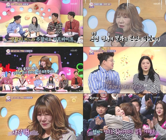 고민주인공은 엄마와의 가장 행복했던 때를 묻는 질문에 힘든 일을 겪었던 중3시절 엄마가 함께 속상해하고 다독이며 위로해주었다며 눈물을 쏟았고, 그 모습을 지켜보던 엄마도 눈물을 흘렸다.