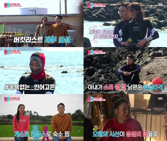 한편, 한고은♥신영수는 부부의 버킷리스트 중 하나였던 제주도로 가을 여행을 떠났다. 둘은 김숙이 추천했던 해녀체험장으로 향했다. 해녀복도 굴욕없는 한고은과 귀여운 해남으로 변신한 신영수는 해녀들의 안내로 물질에 도전했다. 한고은은 숨겨뒀던 수영 실력을 선보이며 거침없이 잠수에 성공해 뿔소라 수확에 나선 반면, 신영수는 "생각보다 깊다"며 물에 제대로 들어가지 못하고 엉덩이만 동동 떠 웃음을 자아냈다.