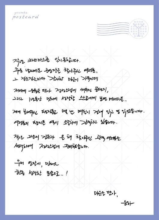 가수 윤하가 팬들에게 애정을 듬뿍 담은 손편지를 보냈다.