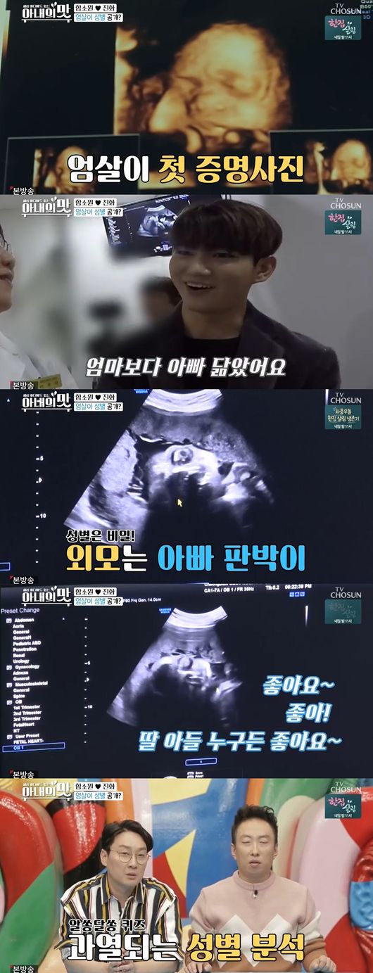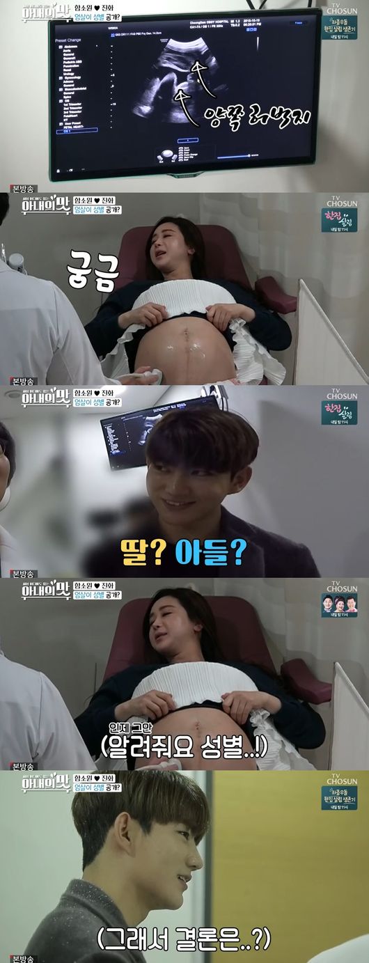 함소원과 진화의 정기검진이 그려졌다. 드디어 어느 덧 성별을 알수 있다고. 하지만 성별공개보다 산모와 아기의 건강상태 체크가 더 중요했다. 초음파로 아기 얼굴을 확인한 진화는 "돼지눈알 효과가 있다"면서 "오뚝 솟은 코 나 닮아 예쁘다"며 눈을 떼지 못했다. 손가락 하나도 신기한 듯 쳐다봤다.