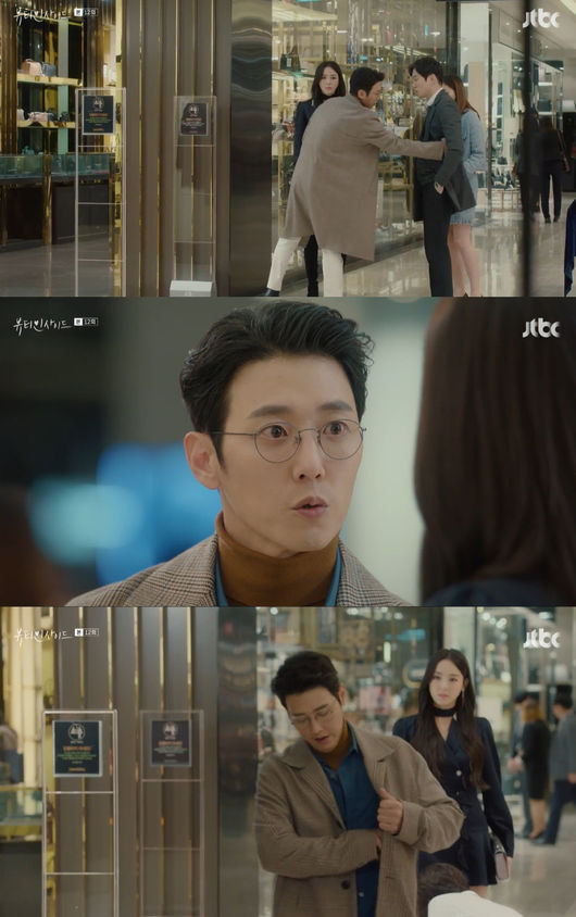 지난 6일 방송된 JTBC 월화드라마 ‘뷰티 인사이드’에서는 최기호(김영훈 분)와 강사라(이다희 분)가 백화점을 둘러보던 중 류은호(안재현 분)와 마주하는 장면이 그려졌다. 앞서 최기호는 자신이 알려준 서도재(이민기 분)의 약점에 미지근한 반응을 보이는 강사라에 기분이 상해 말다툼이 이어졌고, 그러던 중 분에 못 이겨 앞서가는 강사라를 잡아 돌리다 지나가던 행인의 커피를 쏟았다.
