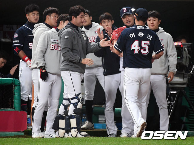 비록 이날 2-7로 완패를 당했다. 그러나 초반 흔들림에도 긴 이닝을 막아준 이용찬의 모습에 두산은 4차전 총력전 발판을 마련할 수 있게 됐다. / bellstop@osen.co.rk