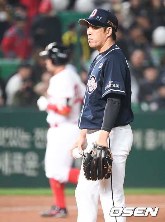 1차전 40구로 다소 많은 공을 던졌지만 이틀 휴식을 취하면서 힘을 비축했다. 8회초 올라온 김태훈은 박건우를 3구 삼진, 최주환을 3루수 직선타로 처리했다. 2사 후 양의지에 우전 안타를 내줬지만 오재일도 2루수 직선타로 요리, 8회를 깔끔하게 막았다.
