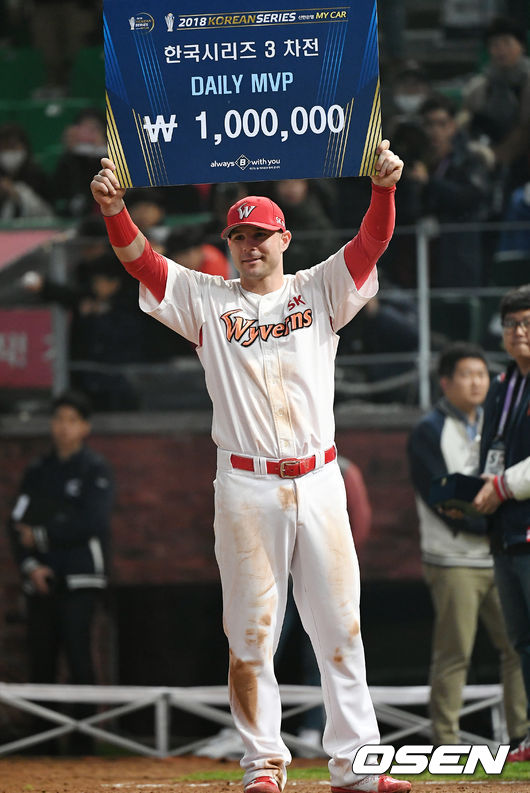 잠실에서 열린 1,2차전에서 SK와 두산은 각각 1승 1패를 기록했다. 치고 나가기 위해서는 3차전이 중요한 상황 로맥이 주인공이 됐다. 로맥은 1회말 1,2루에서 이용찬의 직구를 공략해 홈런을 날리며 기선제압을 했다. 여기에 3-2로 앞선 8회말에도 선두타자로 나와 다시 한 번 아치를 그리며 팀 승리 분위기를 이끌었다. 팀이 승리하면서 로맥은 데일리 MVP에 선정됐다.