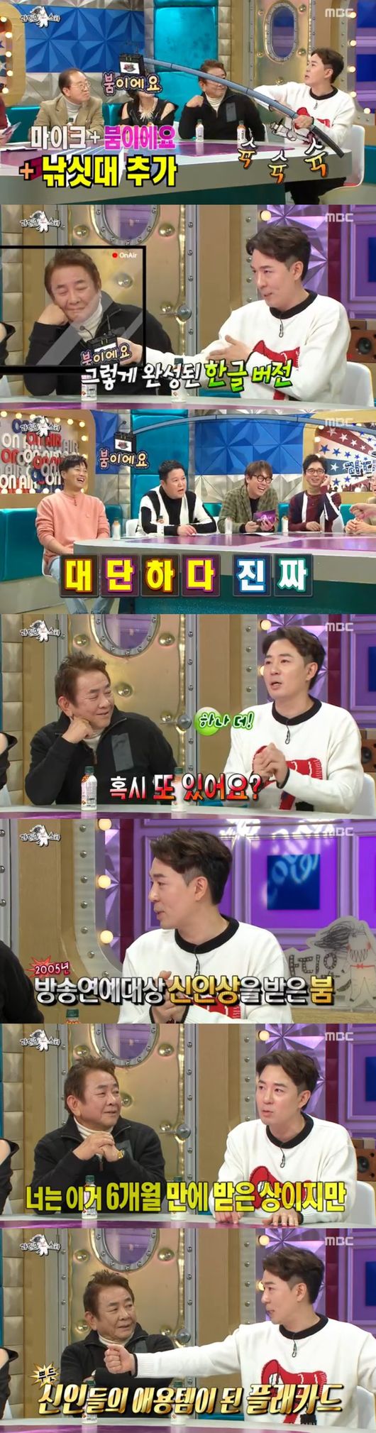 방송연예 대상 신인상을 받았던 붐은 "플랜카드로 감사 인사를 전한 것도 시초"라면서 남다른 열정과 센스를 보여 눈길을 끌었다. 허참은 붐을 신기하게 쳐다보더니 "앞으로 할 프로그래 많을 것"이라며 덕담을 전했다.