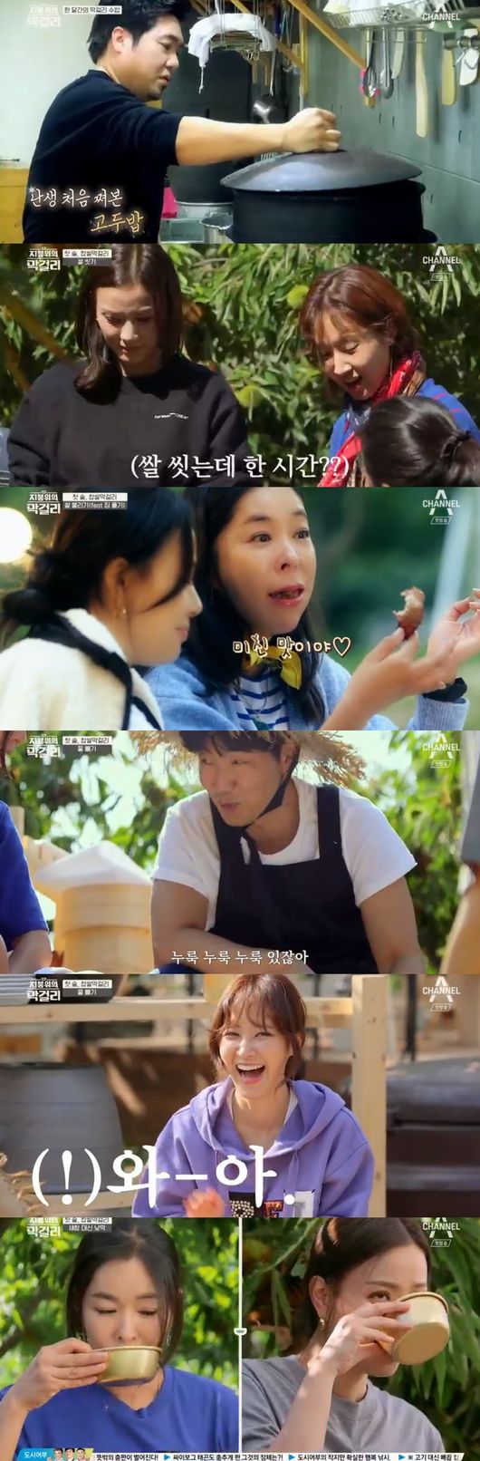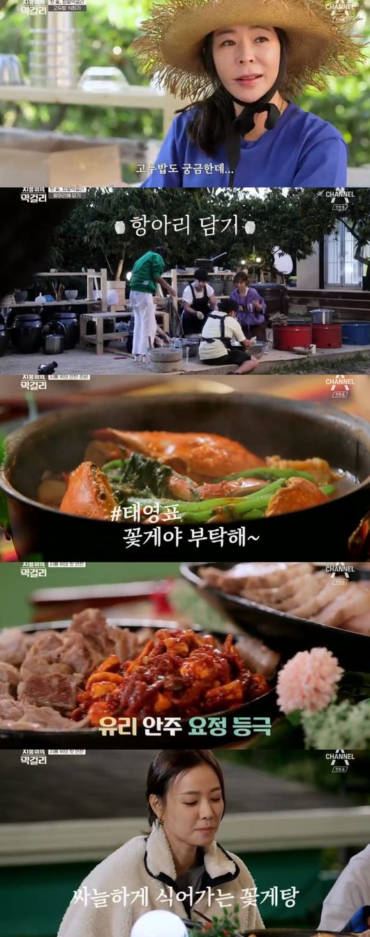 7일 오후 11시, 첫 방송된 채널A 새 예능 '지붕위의 막걸리'는 이혜영, 이종혁, 김조한, 손태영, 권유리가 지막리에 모여 함께 술을 빚고 안주를 만들어 마시는 소확행을 담았다.