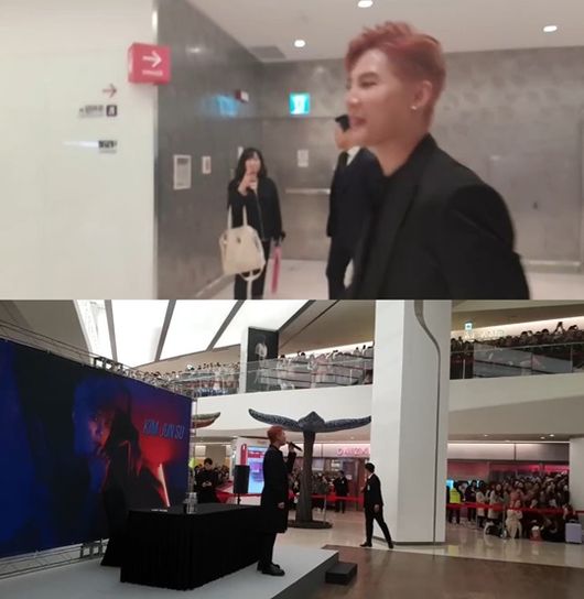 지난 7일 오후 포털사이트 네이버에서 생중계된 V라이브에서는 김준수의 팬사인회 가는 길이 공개됐다.